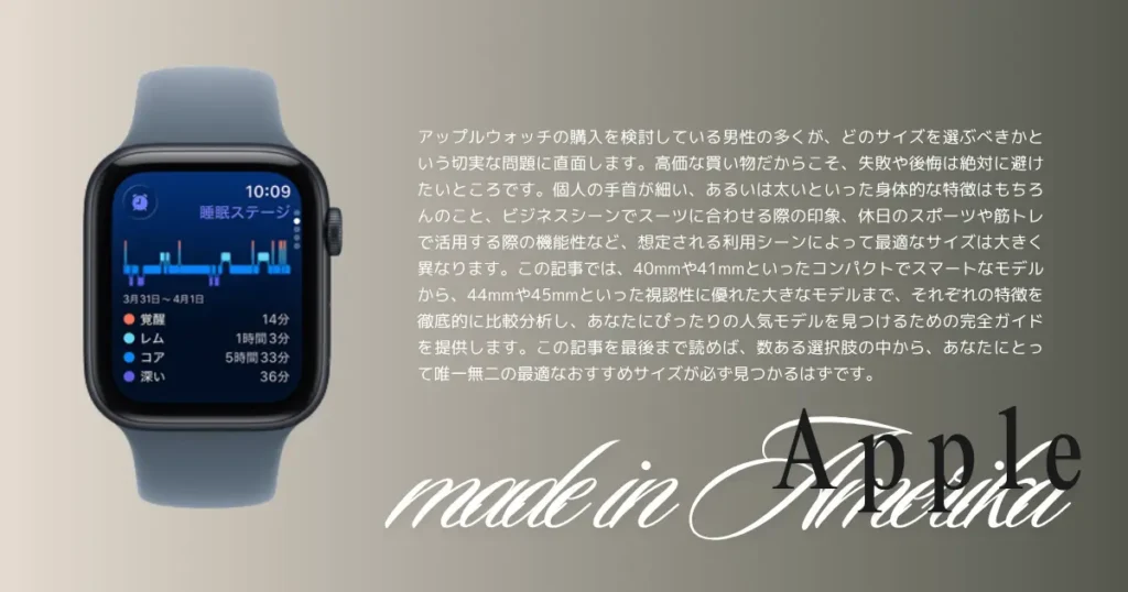 男性が選ぶアップルウォッチのサイズを徹底解説。手首の太さやビジネス、スポーツなど利用シーン別に比較し、後悔しないポイントを紹介。アップルウォッチでサイズ【男性】で迷っている方の悩みを解決します。 -