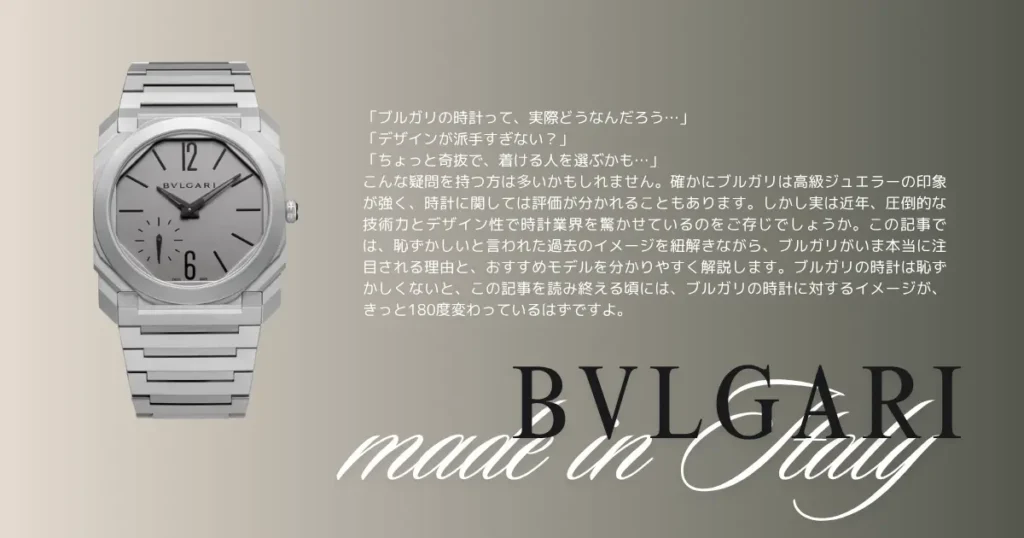 ブルガリの時計が恥ずかしいは誤解?ブルガリの時計が恥ずかしいと言われる理由と、オクトなどの真の評価や技術力をプロが解説。