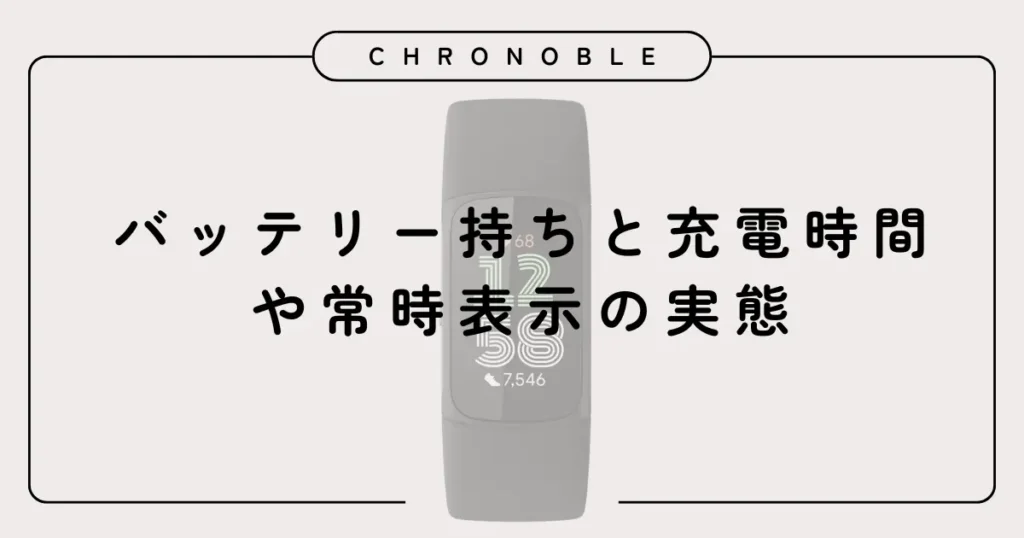 もしあなたが、腕時計のように常に時刻を表示させておく「常時表示モード(AOD)」をオンにすると、バッテリー持ちは一気に2〜3日程度まで短くなります。これはCharge 6でも5でも同様です。