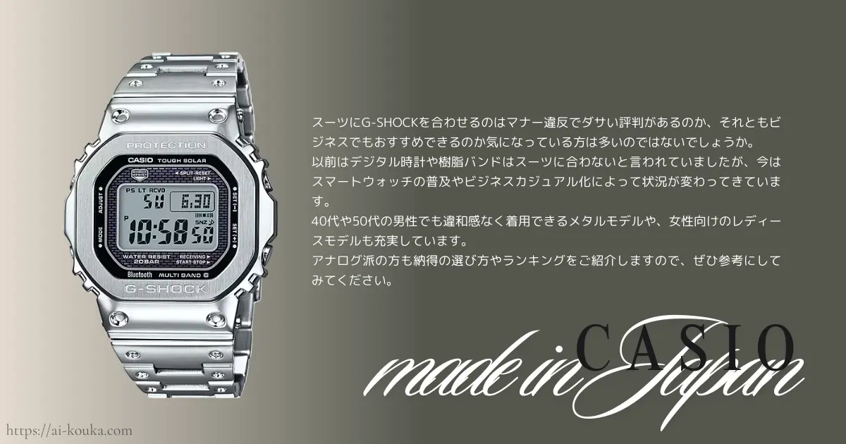 ここからは、元販売員の私が自信を持っておすすめできる、「スーツに合わせても恥ずかしくないG-SHOCK」を具体的にご紹介します。